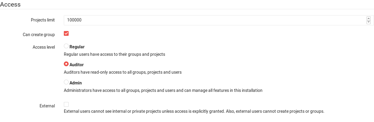 - If particular users need visibility or access to most of all projects in your GitLab instance, instead of manually adding the user to all projects, you can create an Auditor user and then share the credentials with those users to which you want to grant access.