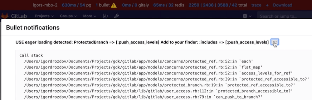 Bullet is a Gem that can be used to track down N+1 query problems. Bullet section is displayed on the performance-bar.