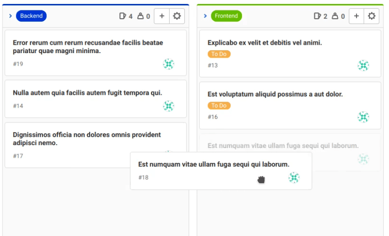 Then, when they're done, all they have to do is drag it to the next list, Backend. Then, a backend developer can eventually pick it up. When they’re done, they move it to Done, to close the issue.