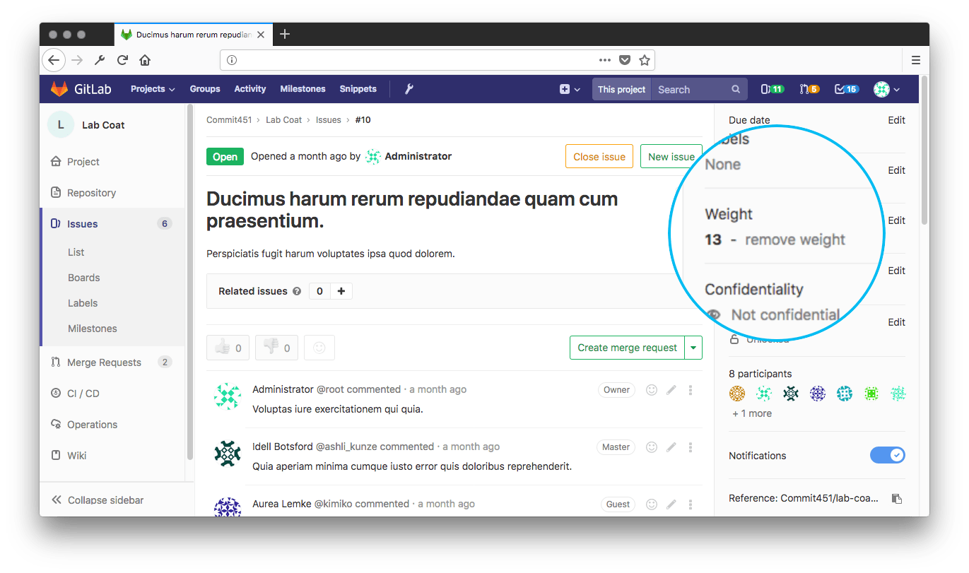 When you have a lot of issues, it can be hard to get an overview. By adding a weight to each issue, you can get a better idea of how much time, value or complexity a given issue has or costs.