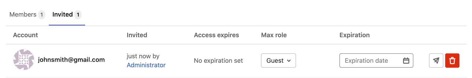 Once done, hit Add users to project and watch that there is a new member with the e-mail address we used above. From there on, you can resend the invitation, change their access level, or even delete them.