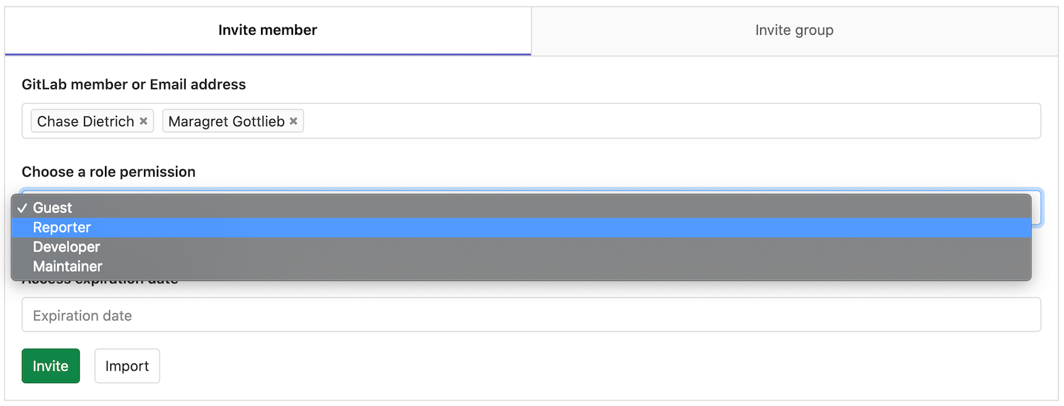 As you can imagine, you can mix inviting multiple people and adding existing GitLab users to the project.